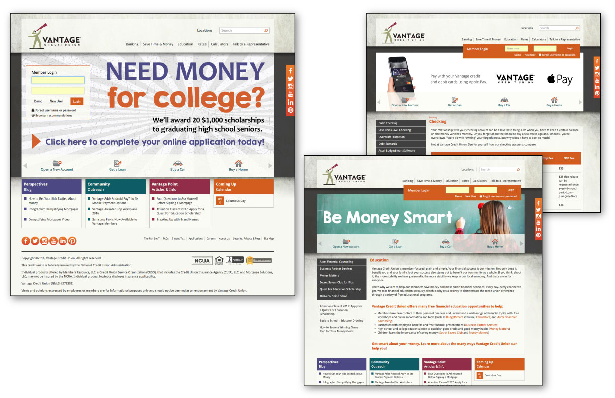 The primary challenge involved merging three separate sites (public and two banking sites) into a unified, seamless website. The existing website for Vantage Credit Union was outdated and required a redesign to enhance navigation ease and maintain consistency for members.